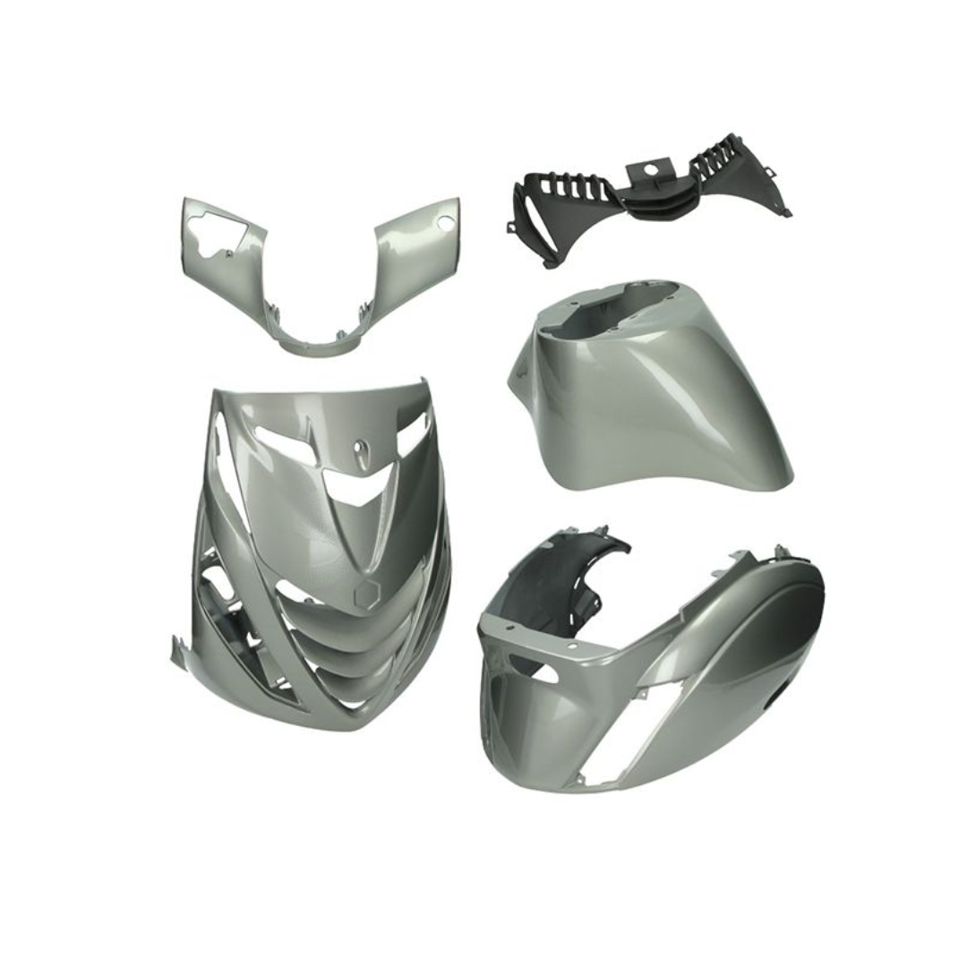 Geef je scooter een unieke en opvallende look met de Kappenset Agaath Grijs inclusief stickerset. Deze complete set wordt geleverd in een stijlvolle grijze kleur en bijpassende stickerset naar keuze. Kies je voor deze optie, dan zorgen wij ervoor dat de stickers strak en professioneel worden aangebracht op de nieuwe kappenset. Ideaal als je het zelf niet wil of kan doen – wij nemen het werk uit handen! Klaar om direct te monteren voor een frisse, custom uitstraling.