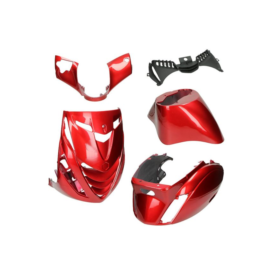 Geef je scooter een unieke en opvallende look met de Kappenset Bordeaux Rood inclusief stickerset. Deze complete set wordt geleverd in een stijlvolle rode kleur en bijpassende stickerset naar keuze. Kies je voor deze optie, dan zorgen wij ervoor dat de stickers strak en professioneel worden aangebracht op de nieuwe kappenset. Ideaal als je het zelf niet wil of kan doen – wij nemen het werk uit handen! Klaar om direct te monteren voor een frisse, custom uitstraling.