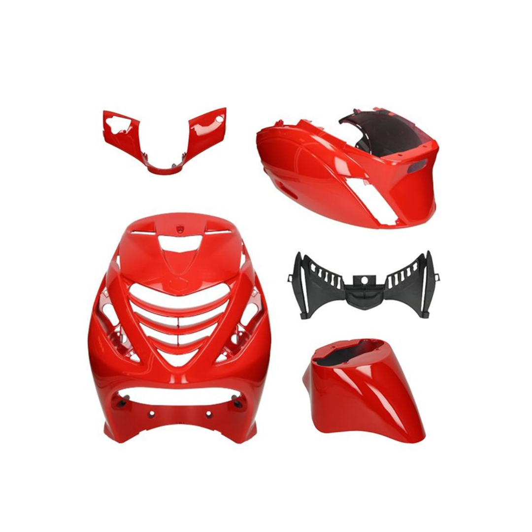 Geef je scooter een unieke en opvallende look met de Kappenset Ferrari Rood inclusief stickerset. Deze complete set wordt geleverd in een stijlvolle rode kleur en bijpassende stickerset naar keuze. Kies je voor deze optie, dan zorgen wij ervoor dat de stickers strak en professioneel worden aangebracht op de nieuwe kappenset. Ideaal als je het zelf niet wil of kan doen – wij nemen het werk uit handen! Klaar om direct te monteren voor een frisse, custom uitstraling.