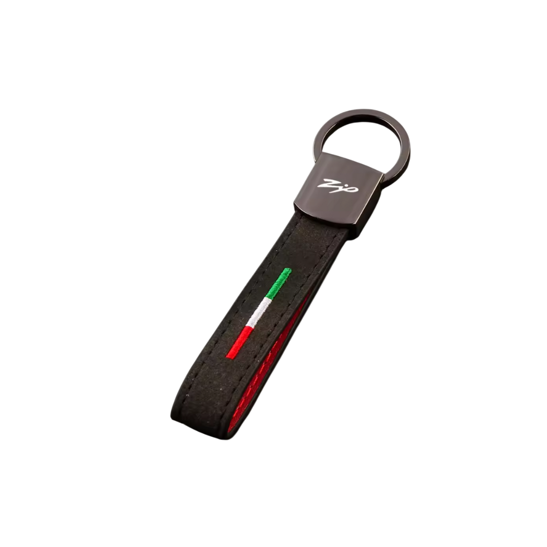 Luxe en stevige Sleutelhanger Zip Leer, stijlvol vervaardigd uit hoogwaardig leer. Voorzien van een subtiel ingegraveerd Zip-logo en een elegant geborduurde Italiaanse vlag. Een premium accessoire voor je sleutels – duurzaam, modieus en uniek in design. Perfect als persoonlijke touch aan je sleutelbos.
